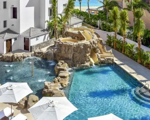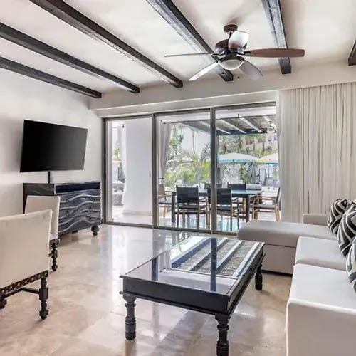 I visited the Chase travel portal and narrowed our options based on point redemption values, accommodations for a family of five for a week, and minimal to no out-of-pocket costs for the room. “We” ultimately chose the Hilton Vacation Club Cabo Azul in San José del Cabo. My wife selected it for its aesthetic and family-friendly vibe. I reserved an ocean-view suite with separate bedrooms, a kitchenette, and a sleeper sofa. We opted against an all-inclusive resort because we wanted to explore the area and don’t drink enough to justify the extra cost. Our goal was a nice place to return to without feeling obligated to stay there most of the trip to justify the expense. There is no all-inclusive option at Cabo Azul if you prefer to go that route.